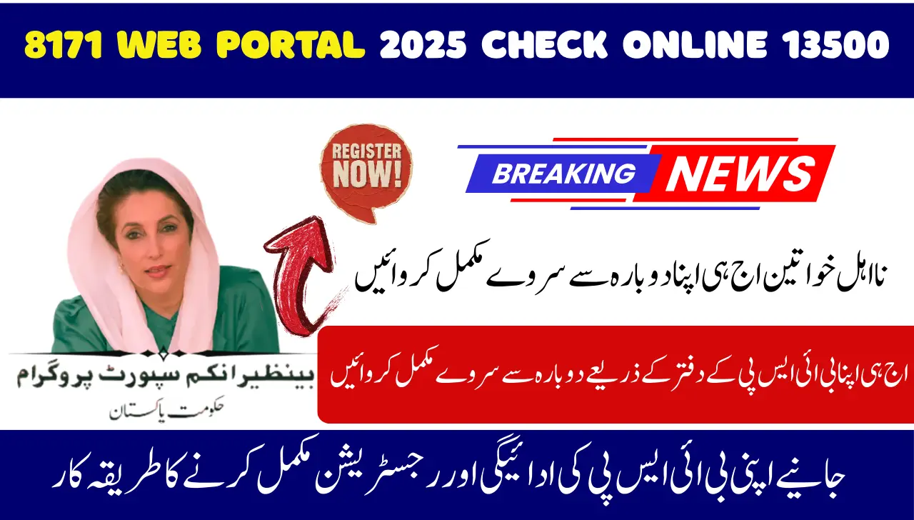 8171 Web portal 2025 check online 13500 Payment & Complete Registration Guide 8171 Web portal 2025 check online 13500 Payment & Complete Registration Guide: Benazir Income Support Program In view of the high inflation in Pakistan, financial assistance is provided to unemployed and deserving families through the Benazir …